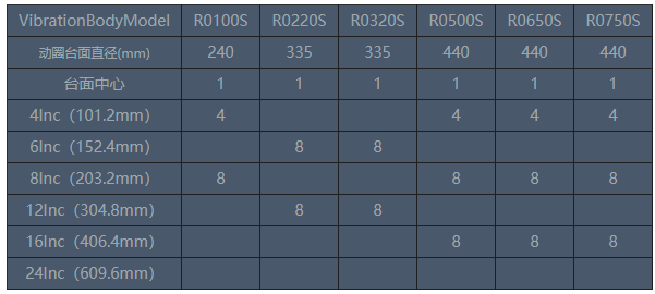 圓形擴(kuò)展臺具有良好的頻響特性,其臺面螺釘分布符合上表標(biāo)注尺寸。